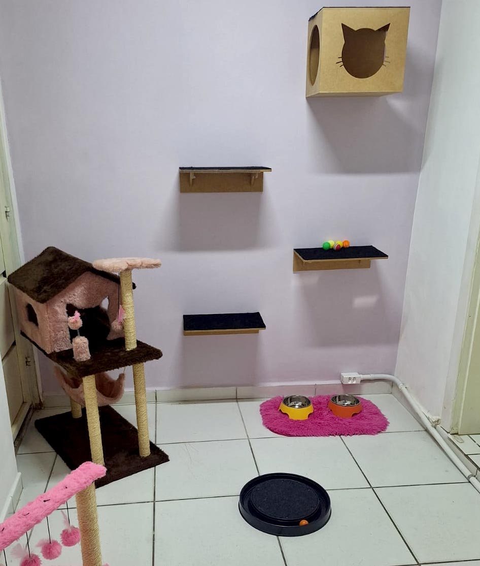 Perfeita para gatos que gostam de sossego e rotina, a Suíte Kimmy combina aconchego e bem-estar em cada cantinho.