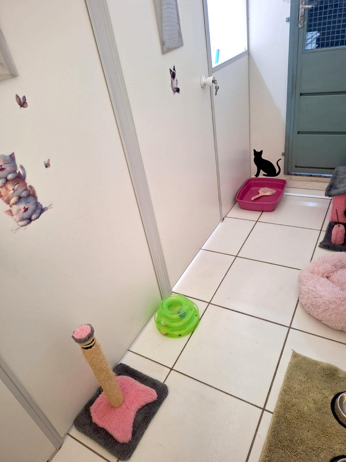 O espaço pode ser personalizado com os pertences dele, como caminha, arranhadores e brinquedos, garantindo bem-estar, aconchego e familiaridade durante a estadia.